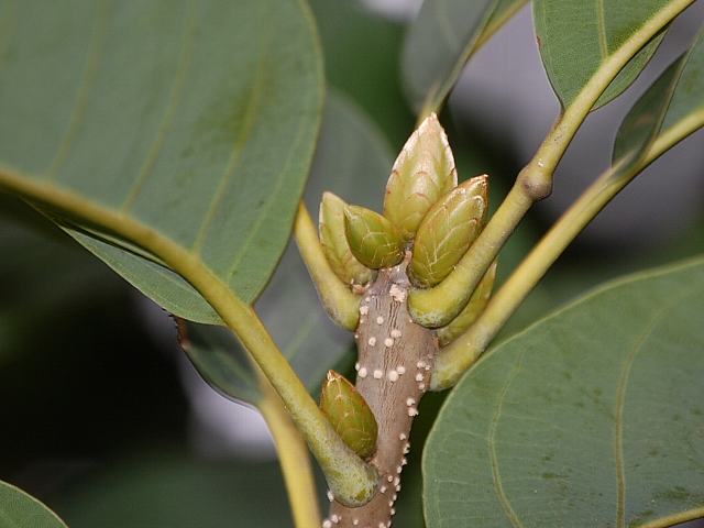 葉の裏面には腺点(蜜を出す孔)が疎らにある。
