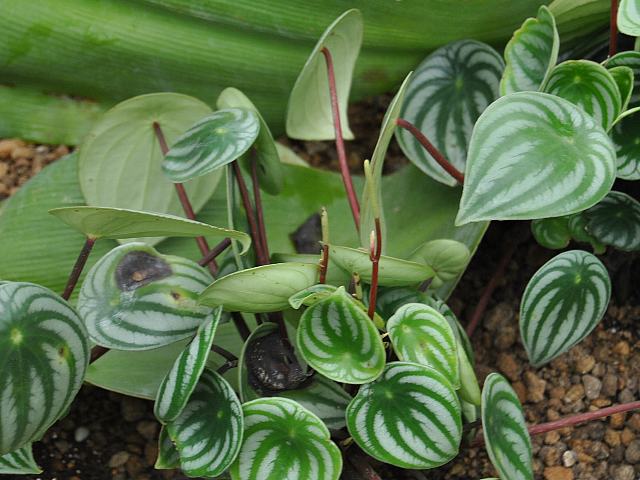 英名はウォーターメロン・ペペロミア(watermelon peperomia)である。