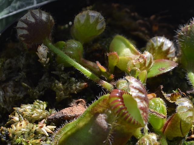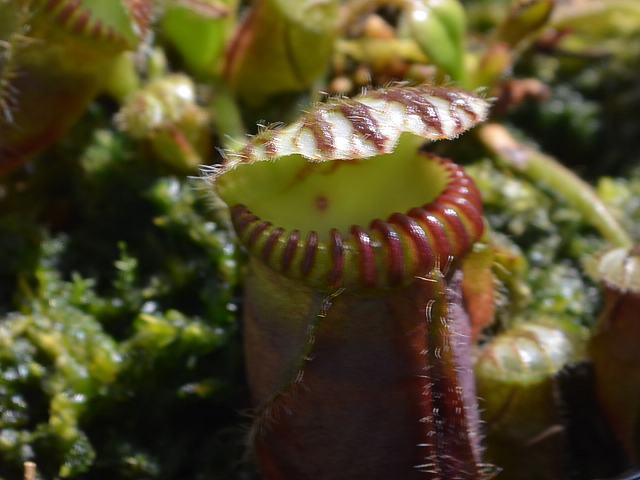 捕虫袋にはひれ状の翼があり、翼の外側には柔らかな毛がたくさん生える。