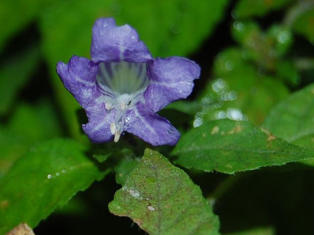 茎の上部の葉の脇に長さ3センチくらいの漏斗状の花がつく。