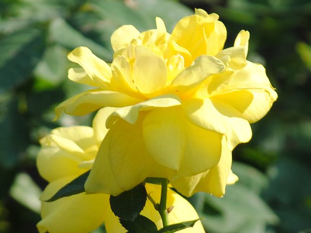花径8~9センチくらいの丸弁高芯咲きの半八重で、花の色は濃い黄色である。