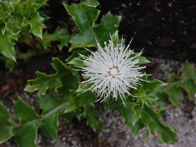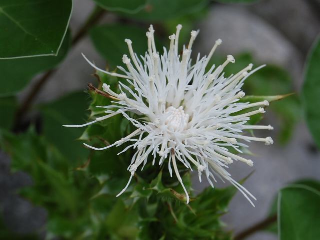花の色は紅紫色だが、稀に白花のものもあり、白花浜薊(シロバナハマアザミ)という。