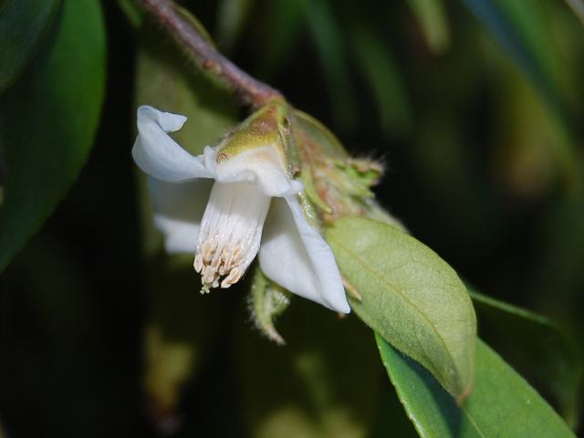 花びらは5枚から6枚であまり開かず、枝の陰に隠れて目立たない。