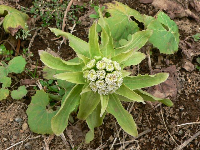 属名の Petasites はギリシャ語の「petasos(つば広の帽子)」からきている。葉が広く大きいことから名づけられた。