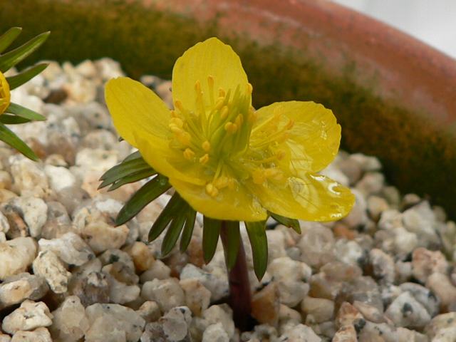属名の Eranthis はギリシャ語の「eri(早い)+anthos(花)」からきている。