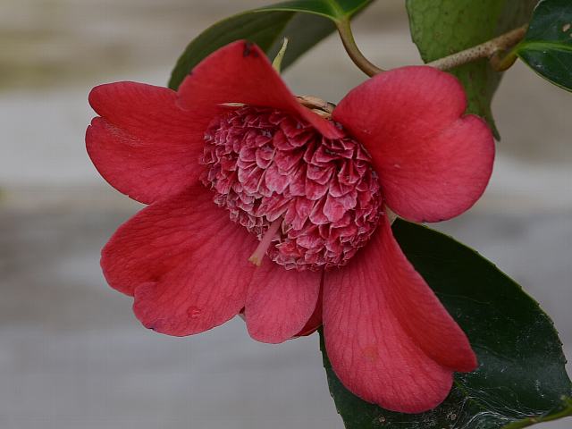 肥後椿は梅しべといって雄しべが放射状に開くのが特徴である。