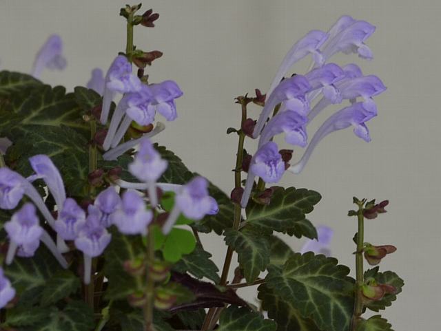 茎先に穂状の総状花序(柄のある花が花茎に均等につく)を出し、青紫色をした唇形の花をたくさんつける。