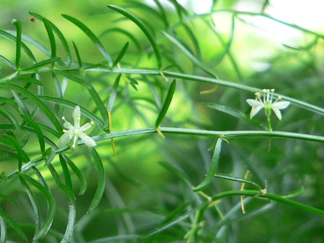 葉のように見えるのは葉状枝といわれる茎の変化したもので、非常に細かい線形である。