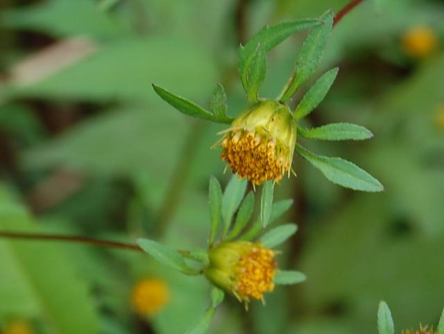 総苞(花序全体を包む葉の変形したもの)の下に線形の苞(葉の変形したもの)がたくさんつく。
