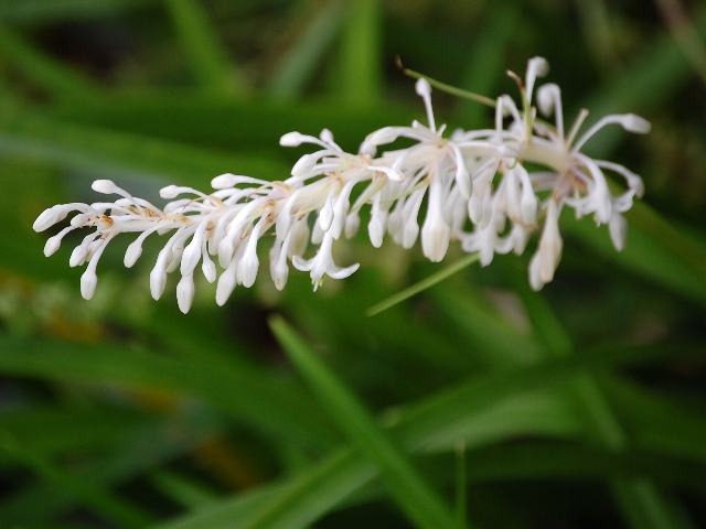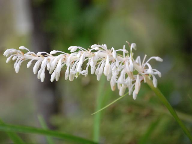属名の Ophiopogon はギリシャ語の「ophio(蛇)+pogon(髭)」からきている。
