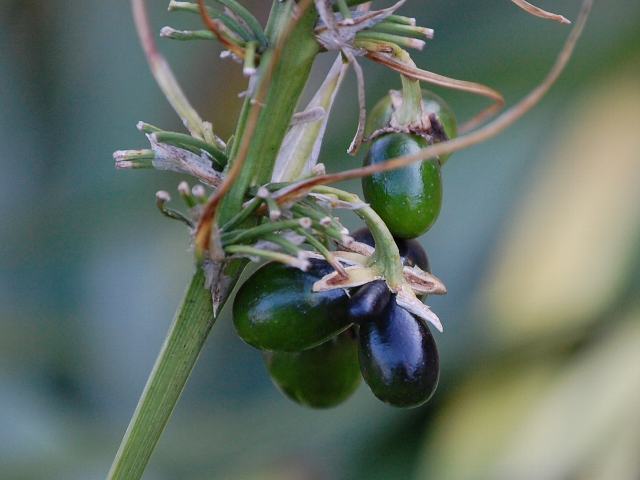 花の後にできる液果状の実(種子)は濃い青色に熟する。