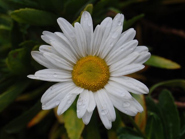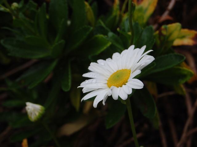 花の色は白く、真ん中の筒状花は黄色い。