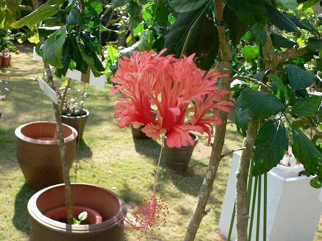 写真は11月に沖縄県本部町の熱帯ドリームセンターで撮った仏桑花(ブッソウゲ)と風鈴仏桑花(フウリンブッソウゲ)である。