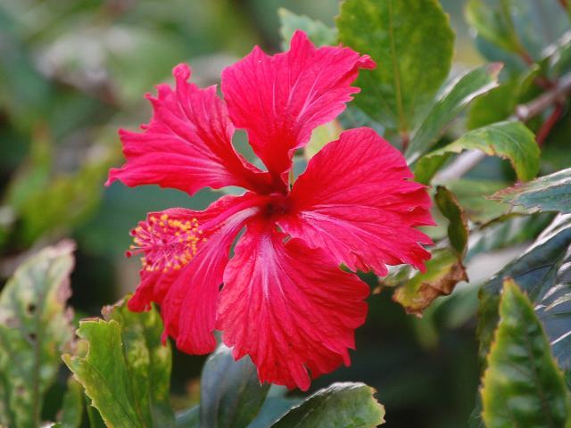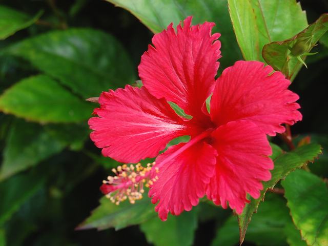 仏桑花(ブッソウゲ)はアオイ科フヨウ属(ヒビスクス属)の常緑低木である。