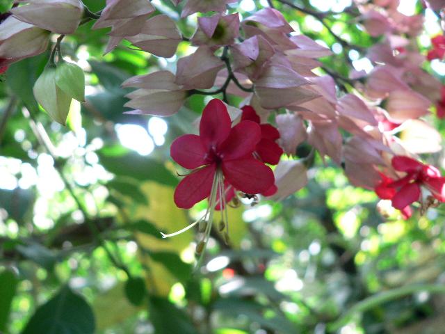 紅源平葛(ベニゲンペイカズラ)はクマツヅラ科クサギ属(クレロデンドルム属)の蔓性常緑低木である。