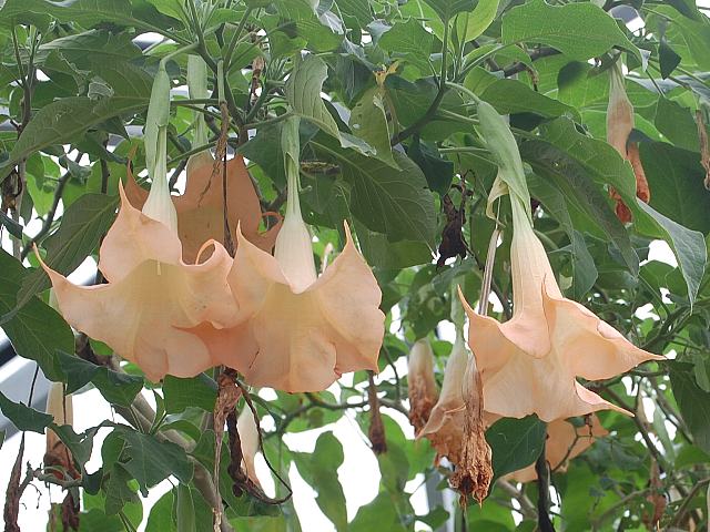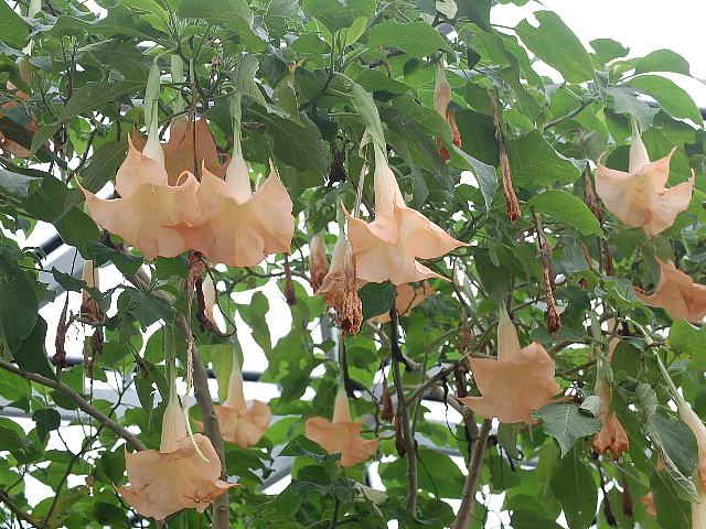 木立朝鮮朝顔(コダチチョウセンアサガオ)はナス科キダチチョウセンアサガオ属の蔓性常緑低木である。