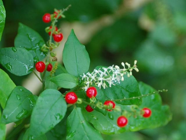 数珠珊瑚(ジュズサンゴ)はヤマゴボウ科ジュズサンゴ属の常緑多年草である。