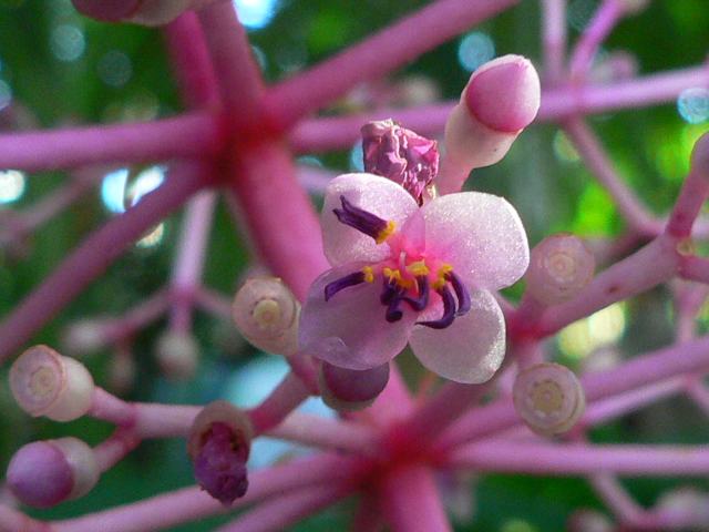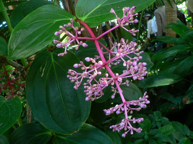 珊瑚野牡丹(サンゴノボタン)はノボタン科メディニラ属の常緑小低木である。