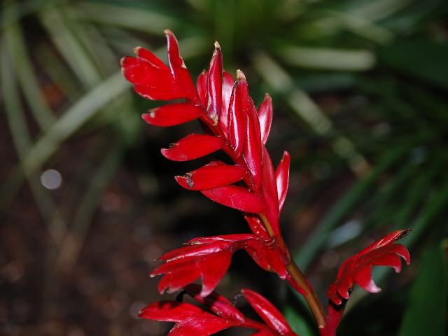 苞(花のつけ根につく葉の変形したもの)は鮮紅色やオレンジ色のものがあり、長い間鑑賞できる。