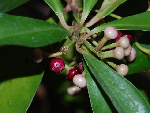 アルディシア・スクアムロサはヤブコウジ科ヤブコウジ属の常緑低木ないし高木である。