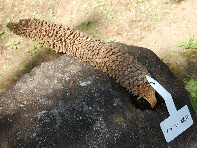 雄花は幹と同じくらい太く、松毬のような形をしている。