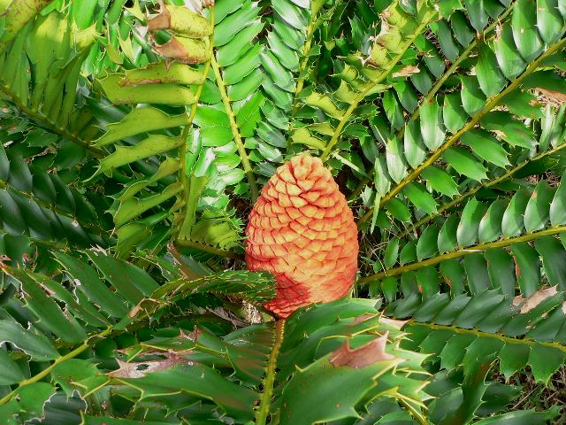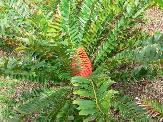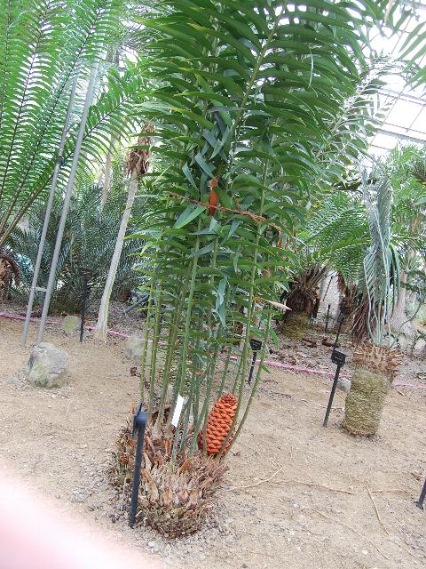 属名の Encephalartos はギリシャ語の「en(中)+kephali(頭部)+artos(パン)」からきている。