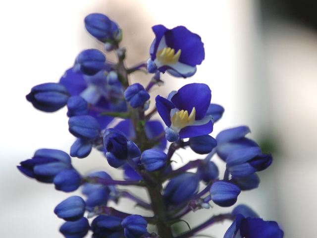 茎先に総状花序(柄のある花が花茎に均等につく)を出し、青紫色の花をつける。