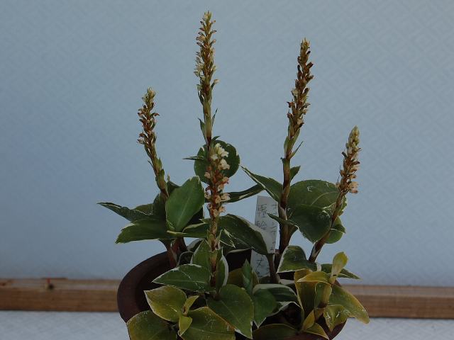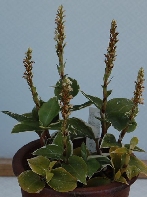 基本種は八丈繻子蘭(ハチジョウシュスラン)で、葉の中央に白い筋が入る。