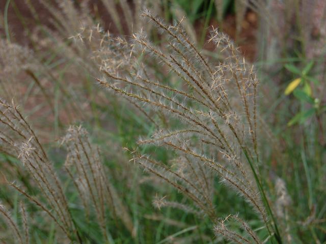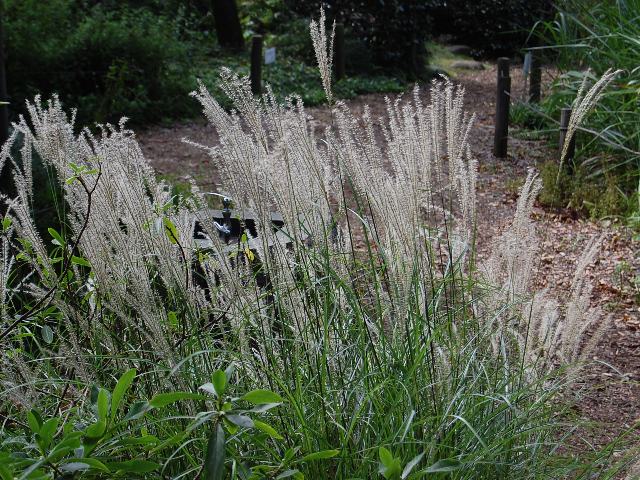 属名の Miscanthus はギリシャ語の「mischos(小花柄)+anthos(花)」からきている。