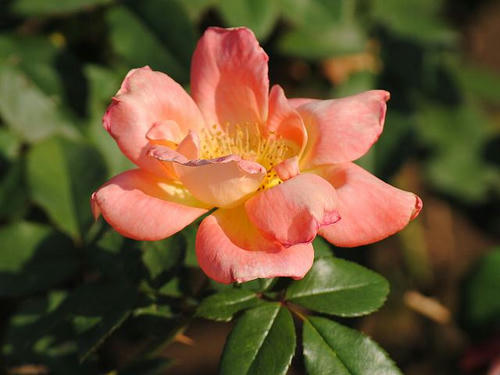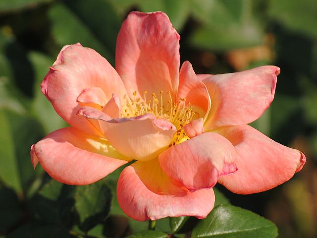 花の色は柔らかなオレンジ色で、外側の花弁の先はピンクが交じる。