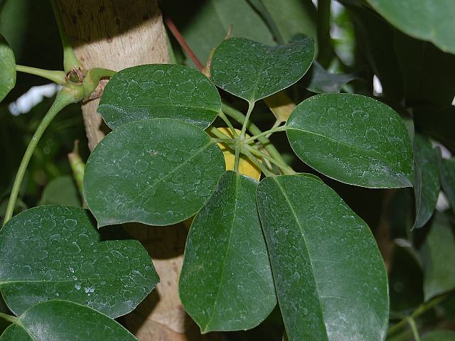 属名の Schefflera はポーランドの医師「シェフラー(J. C. Scheffler,1722-1811)さん」の名からきている。