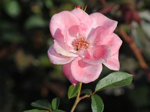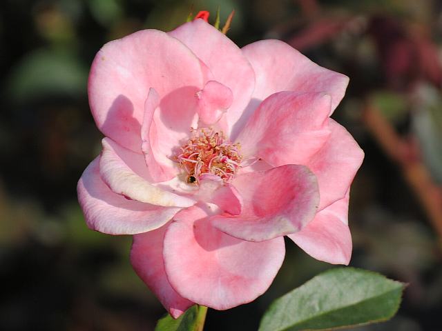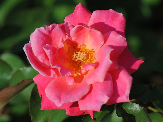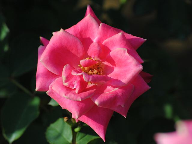 花径8センチくらいの平咲きの半八重で、花の色はピンクである。