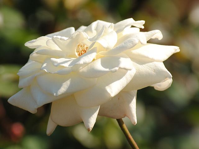 花径11センチくらいの剣弁高芯咲きの半八重である。