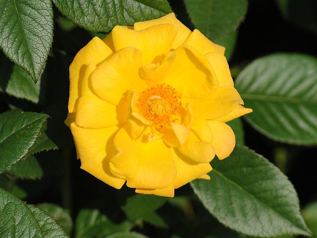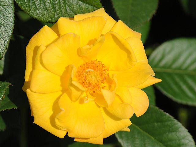 ★鮮やかな黄色の薔薇が眩しげに