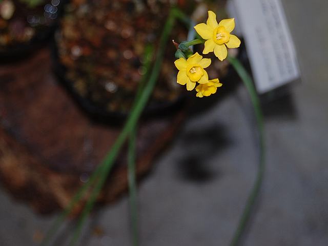 葉の間から出る花茎は中空で、先に数輪の黄色い花をつける。