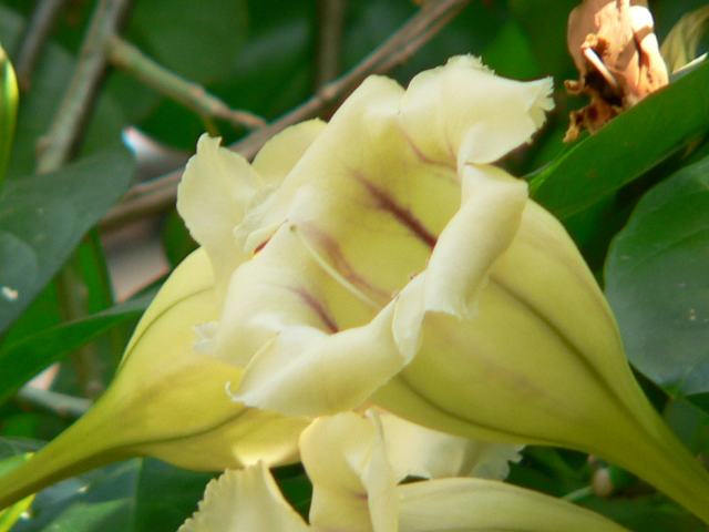 喇叭花(ラッパバナ)はナス科ラッパバナ属(ソランドラ属)の蔓性常緑低木である。
