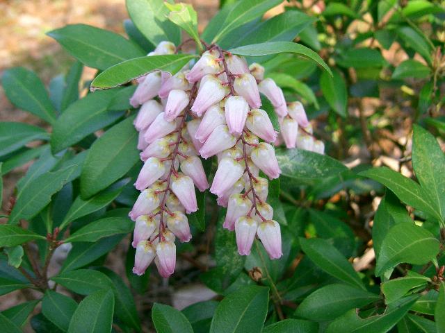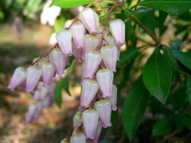 枝先に総状花序(柄のある花が花茎に均等につく)を出し、壺形の小さな花をたくさんつける。