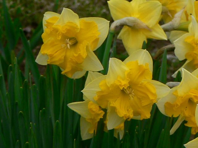 花径が10センチくらいある大輪で、花被片と副花冠はともに黄色である。