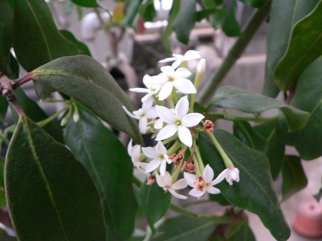山丹花擬き(サンタンカモドキ)はキョウチクトウ科アコカンテラ属の常緑低木である。