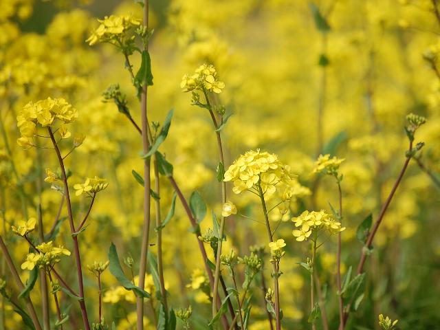 河川の堤防に植えられているのは西洋油菜(セイヨウアブラナ)や西洋芥子菜(セイヨウカラシナ)である。