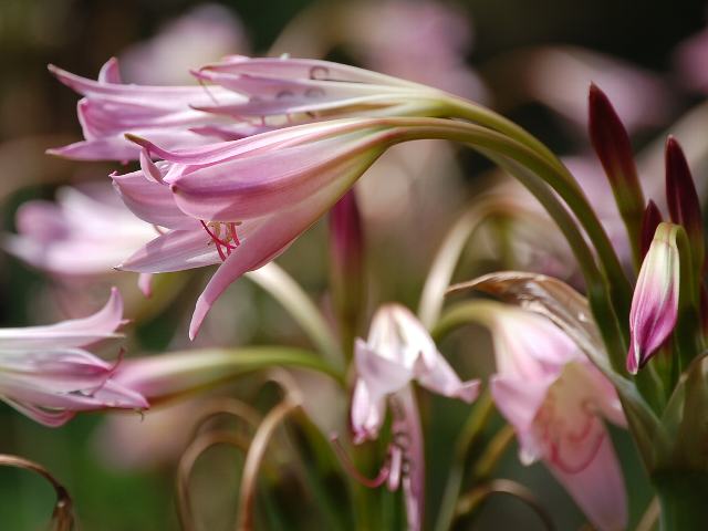 長さが10センチくらいある大きなピンクの花を一度に10輪くらいつける。