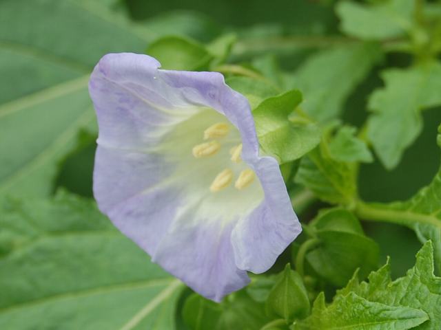 合弁花で、花径は3~4センチあり、先が浅く5つに裂ける。