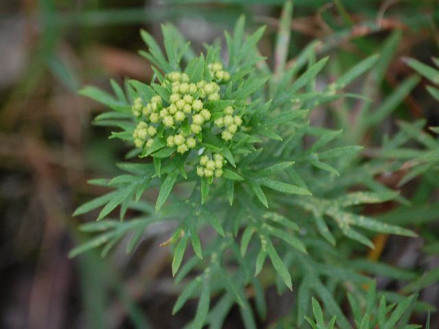 裂片は細かな線形で、裏面には白い綿毛が密生する。