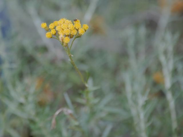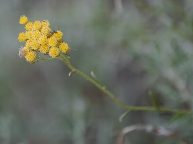 かさかさとした小さな黄色い花(頭花)をたくさんつける。