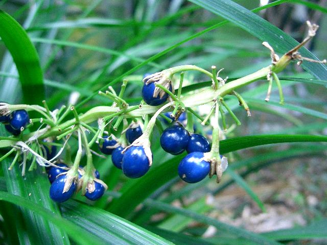 花の後にできる実は液果(果皮が肉質で液汁が多い実)で、熟すと黒くなる。