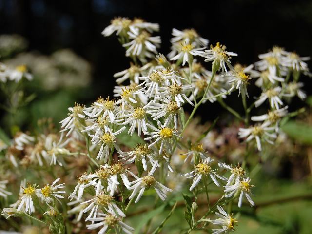 茎先で細かく枝分かれをし、先に花径15ミリくらいの白い花(頭花)をつける。