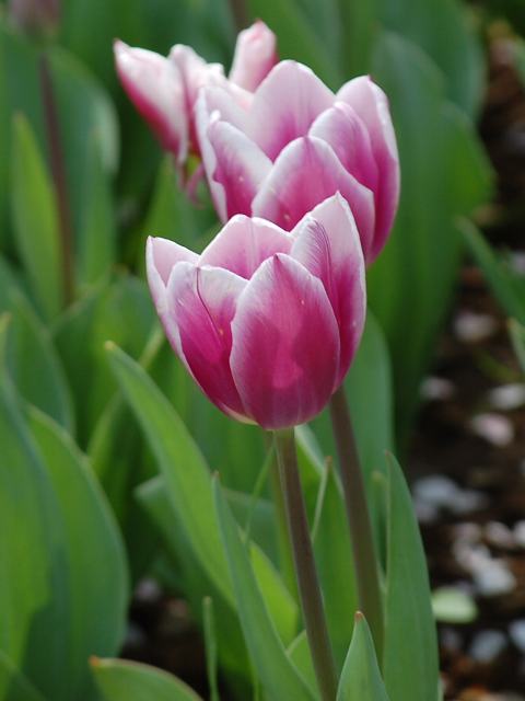 中生咲き(4月中旬から5月上旬)のトライアンフ系 (T:Triumph) に含まれる。