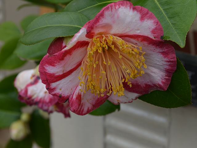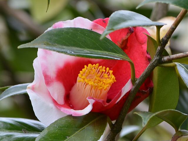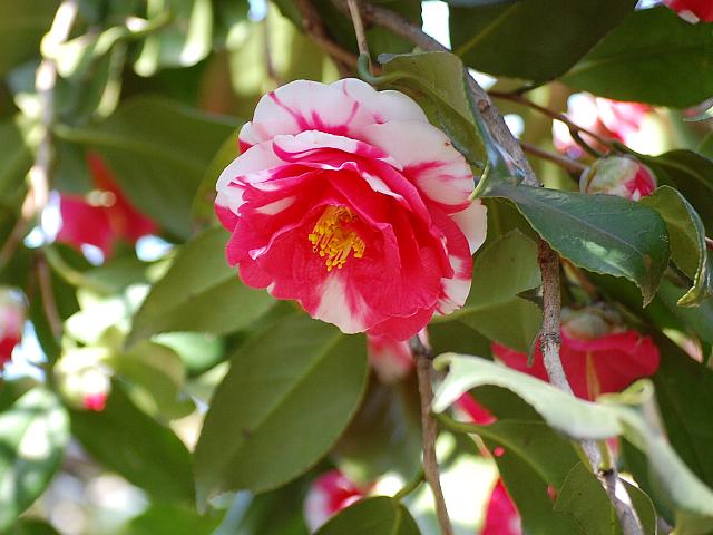 ★ランダムに白い斑入りの椿咲く