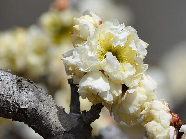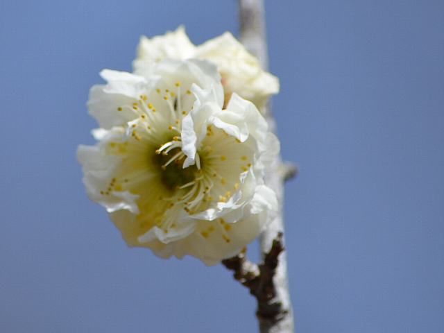 野梅系・野梅性の白い八重咲きの小輪(15から20ミリ)である。
