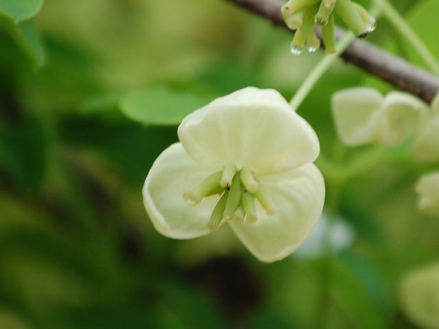 通草(アケビ)の花は淡い紫色だが、本種は名前の通り白い花を咲かせる。